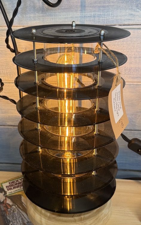 45rpm Vinyl lamp, real records topped with Dexy's Midnight Runners "Come on Eileen" one for the fans! There are two others, Culture Club" Do You Want to Hurt Me" and a classic, " The Snowman" Walking in the Air!
